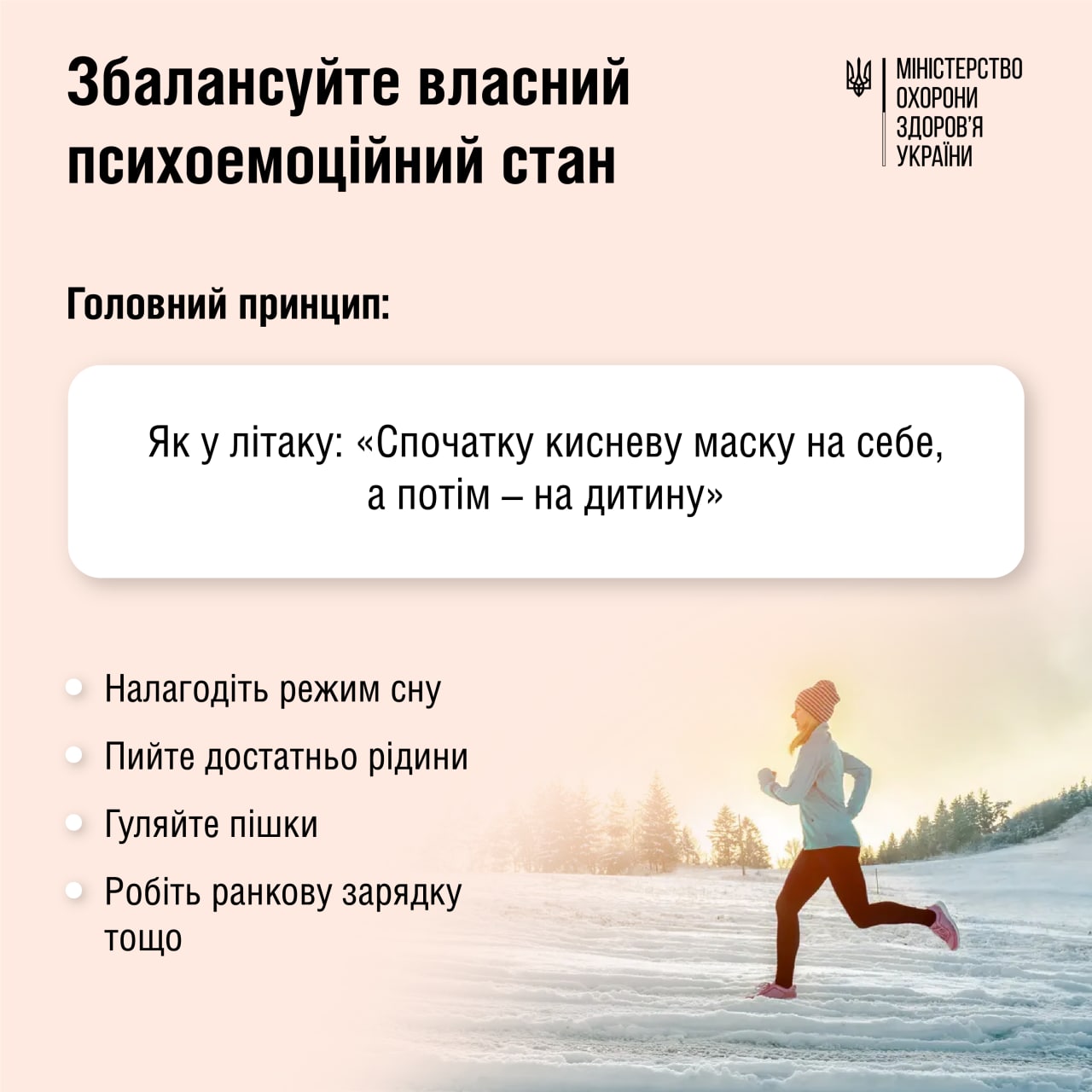 Щоби допомогти дитині, надзвичайно важливо подбати про власну емоційну рівновагу. Як у літаку: «Спочатку кисневу маску на себе, а потім – на дитину».