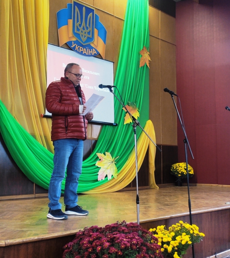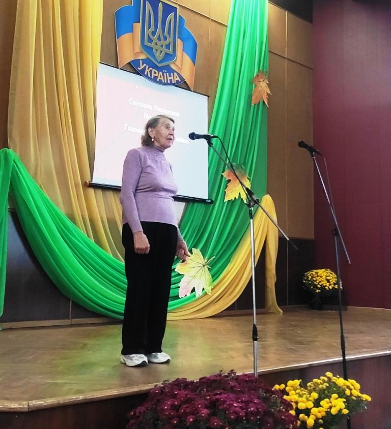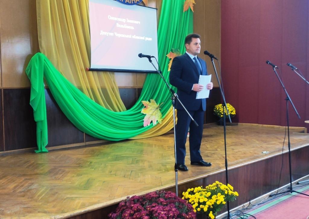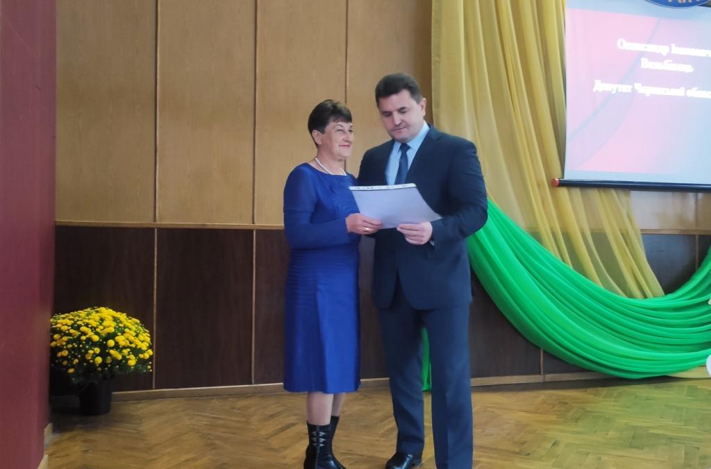 Депутат Черкаської обласної ради Олександр Вельбівець привітав присутніх зі святом і вручив голові ради ветеранської організації Галині Славінській сертифікат на суму 6 тисяч гривень на придбання оргтехніки для потреб ради ветеранів територіальної громади.