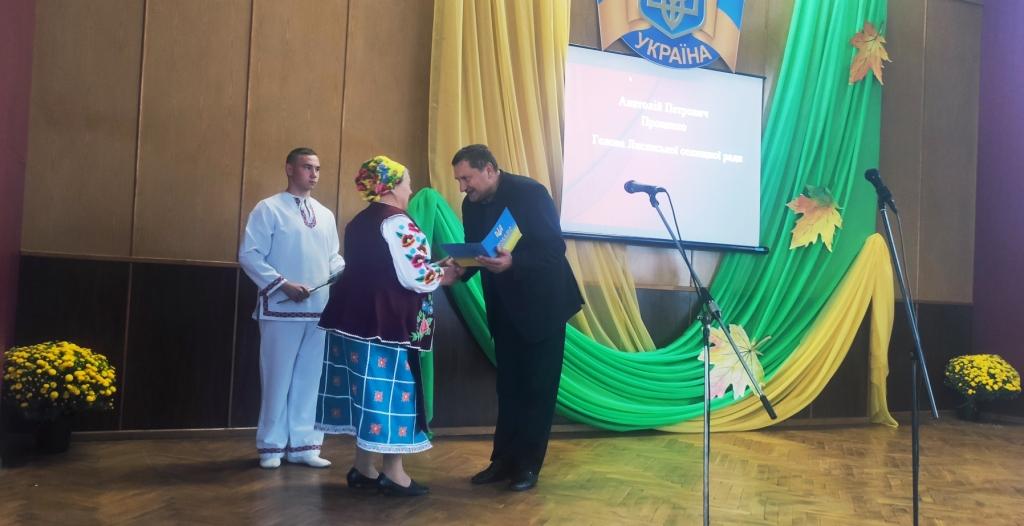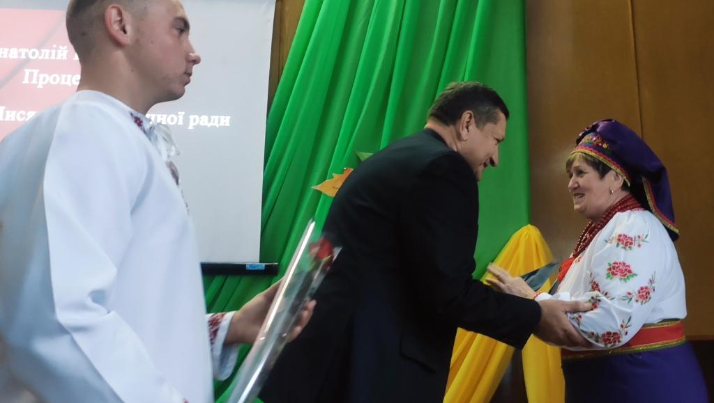 З привітаннями і побажаннями міцного здоров’я, щастя, миру, добра і довголіття присутнім гостям селищний голова Анатолій Проценко з нагоди свята вручив грамоти жителям громади.